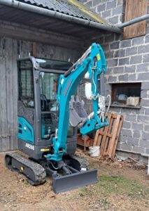 Dzięki kompaktowym wymiarom i dużej manewrowości, maszyna jest idealna do pracy w ograniczonych przestrzeniach, takich jak place budowy, ogrody czy wnętrza budynków. Kolory niebieski i szary oraz standardowa łyżka 450 mm dopełniają jej atrakcyjny wygląd i funkcjonalność.